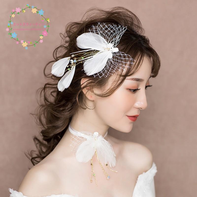 フェザー 羽根 マラボー ヘッドドレス 結婚式 髪飾り 成人式 ヘアアクセサリー Buyma